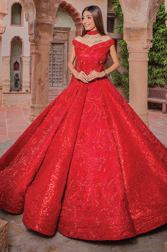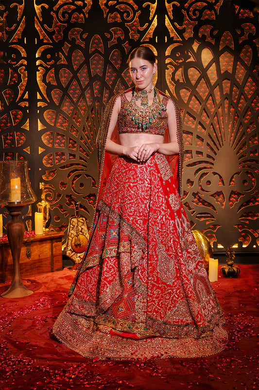 Red Multilateral Layering Lehenga,Choli & Dupatta ( 104 )