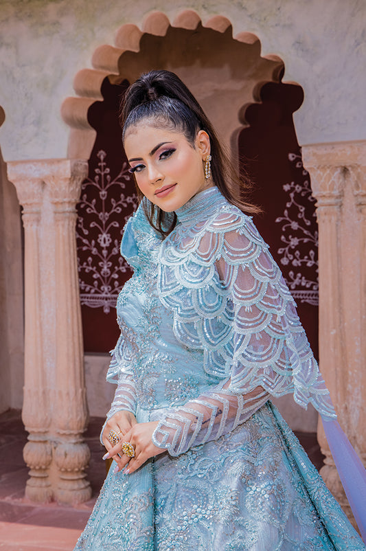 Siver Layering Lehnga with Cape om 902