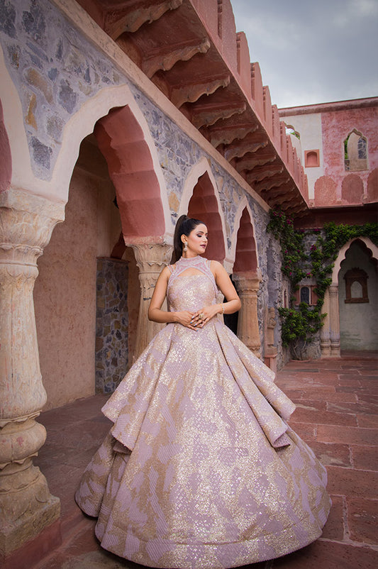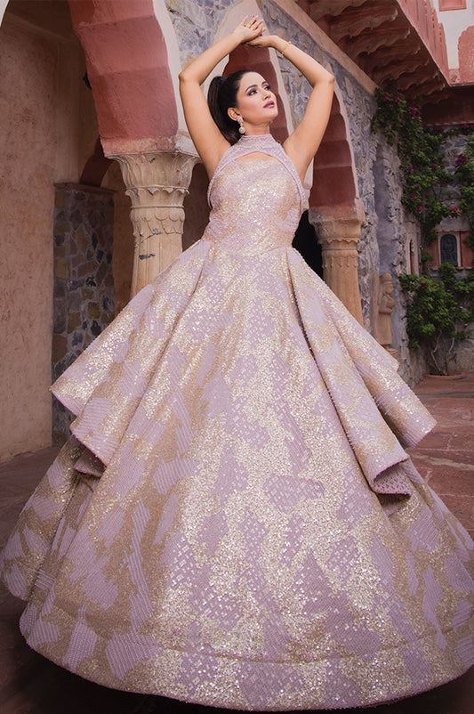 Pale mauve corseted Ball Gown( OM 110 )