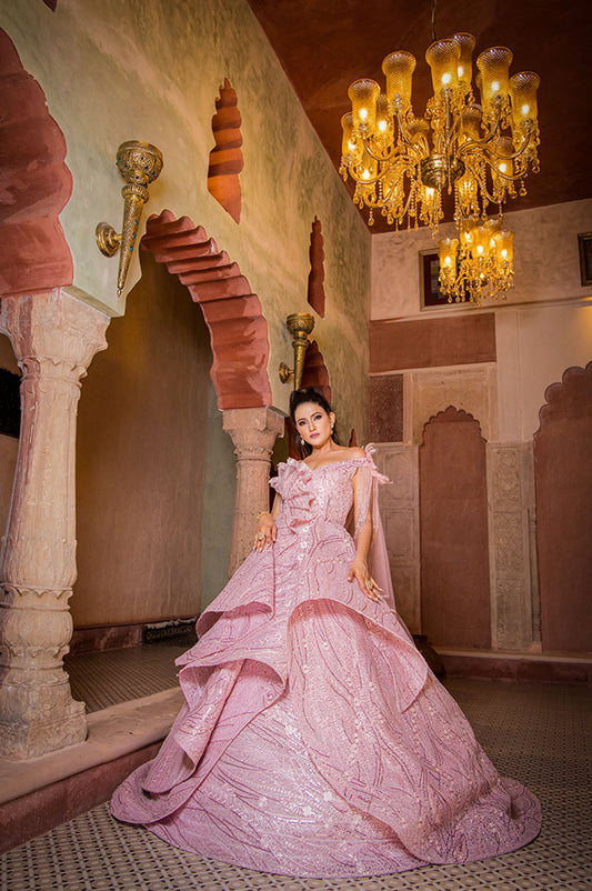 Muted pink corseted Ball Gown( OM 112 )