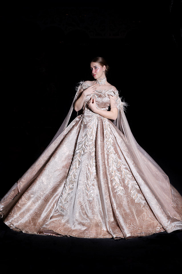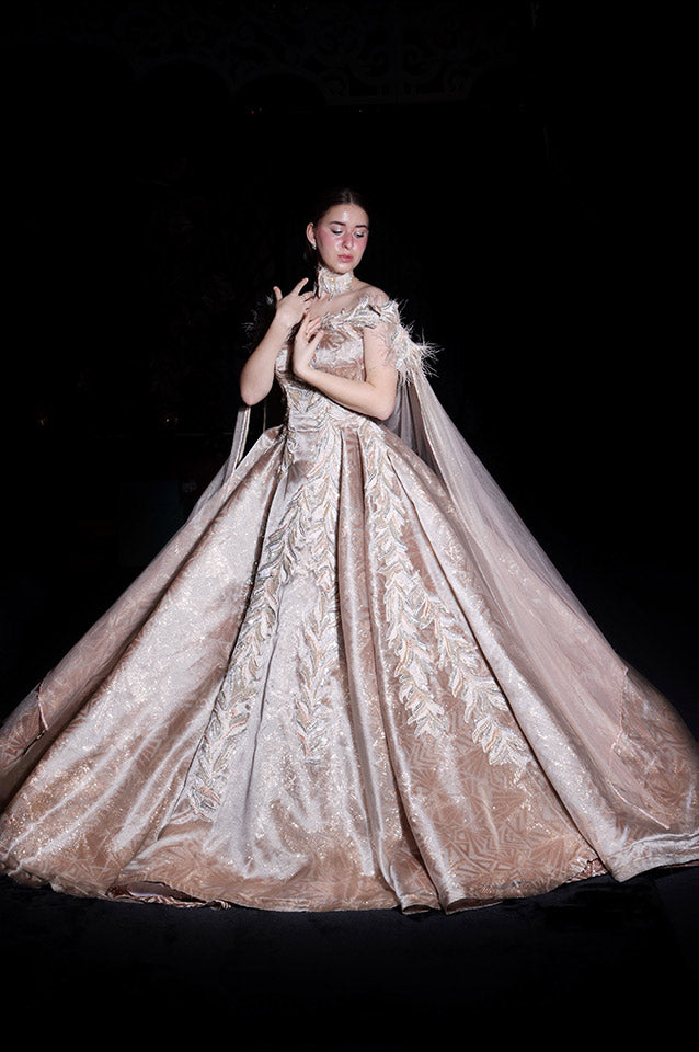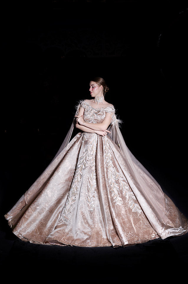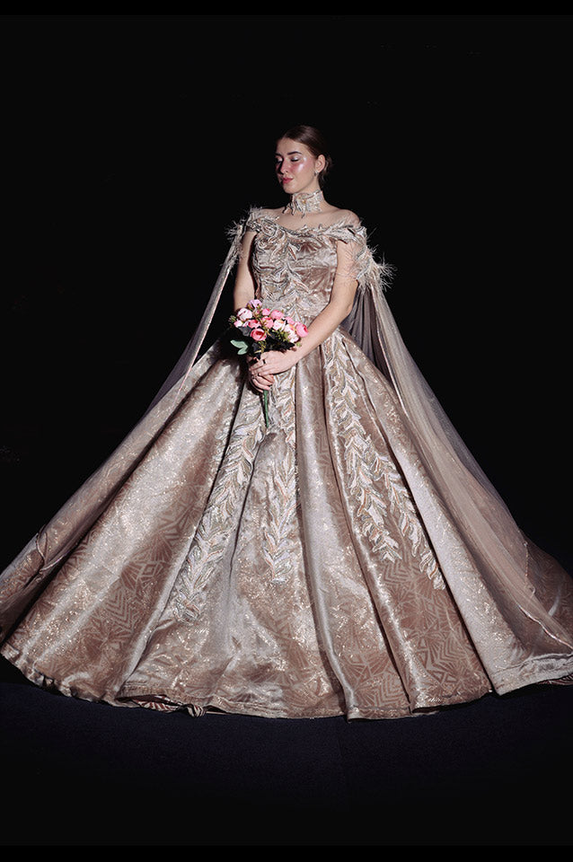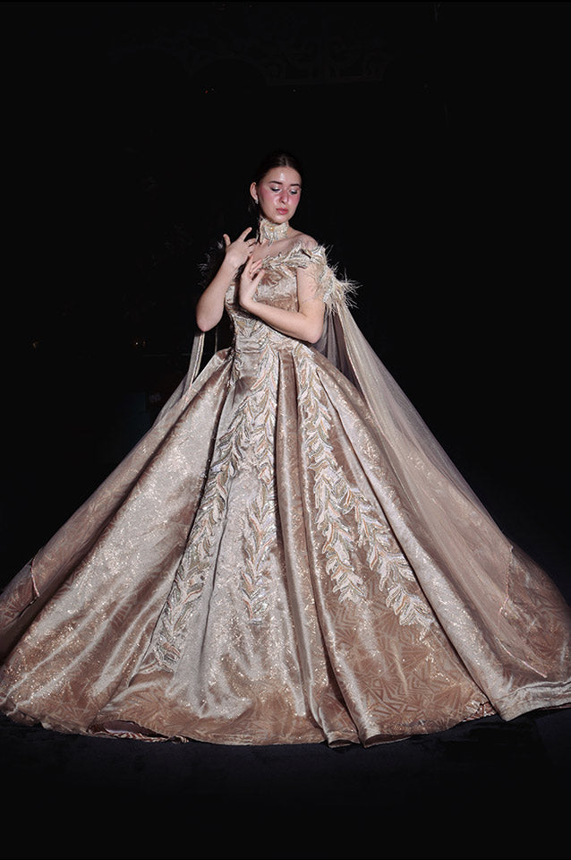 Metallic gold corseted Ball Gown( OM 111 )